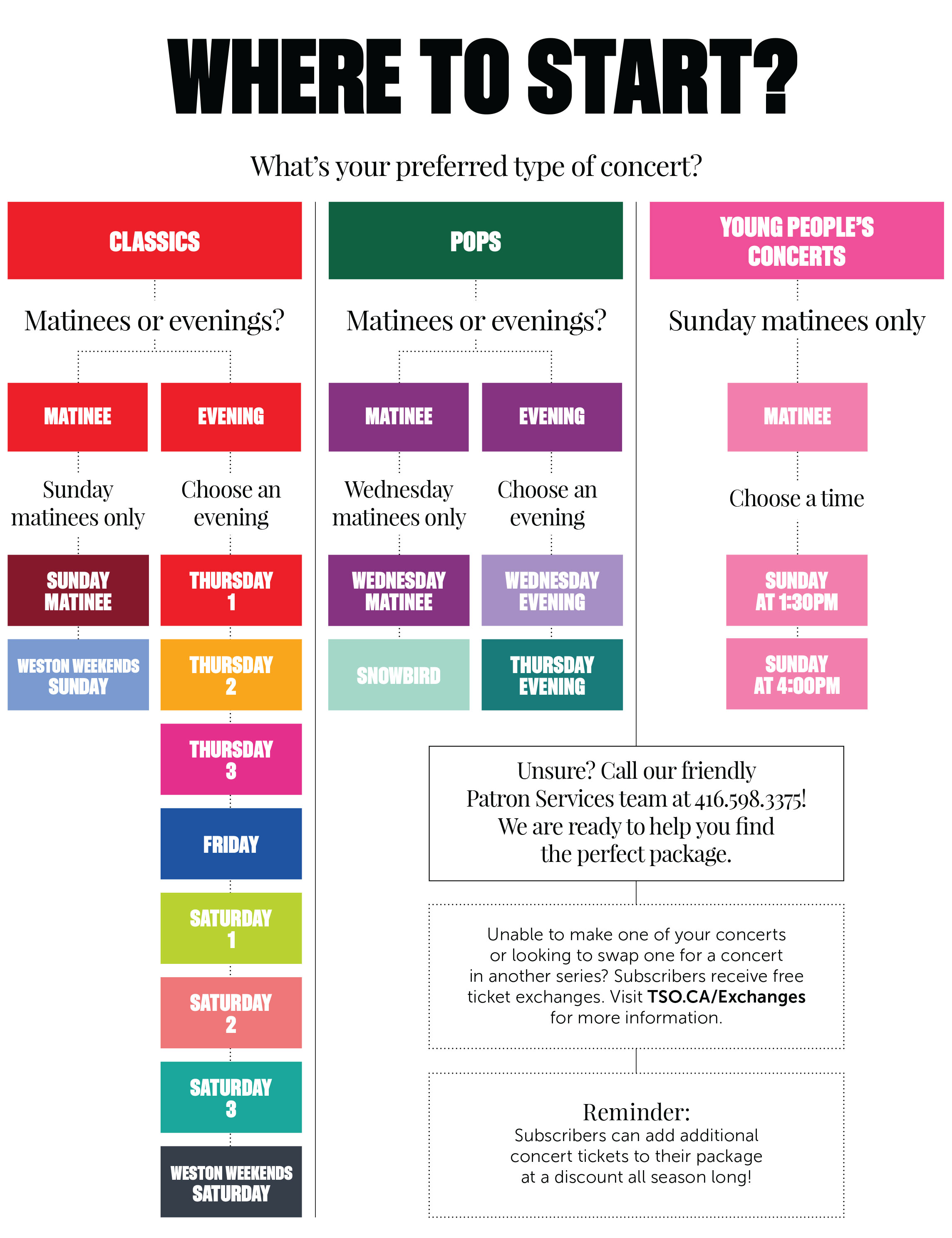 Call our friendly Patron Services team! We are ready to help you find the perfect package.